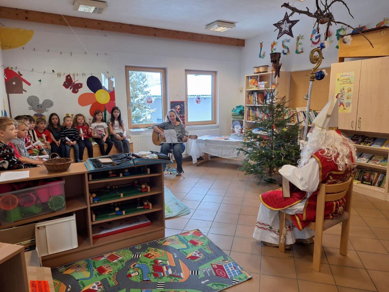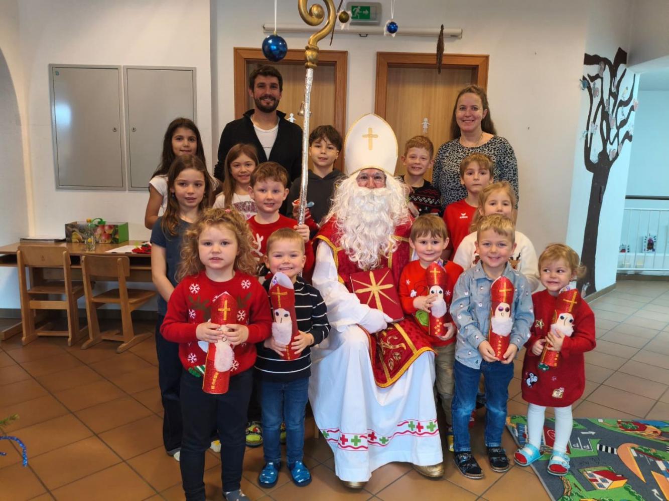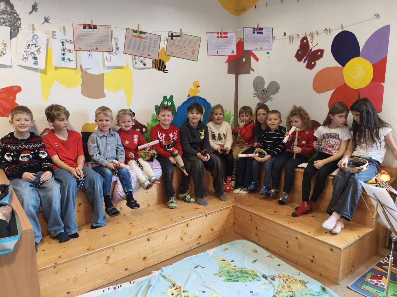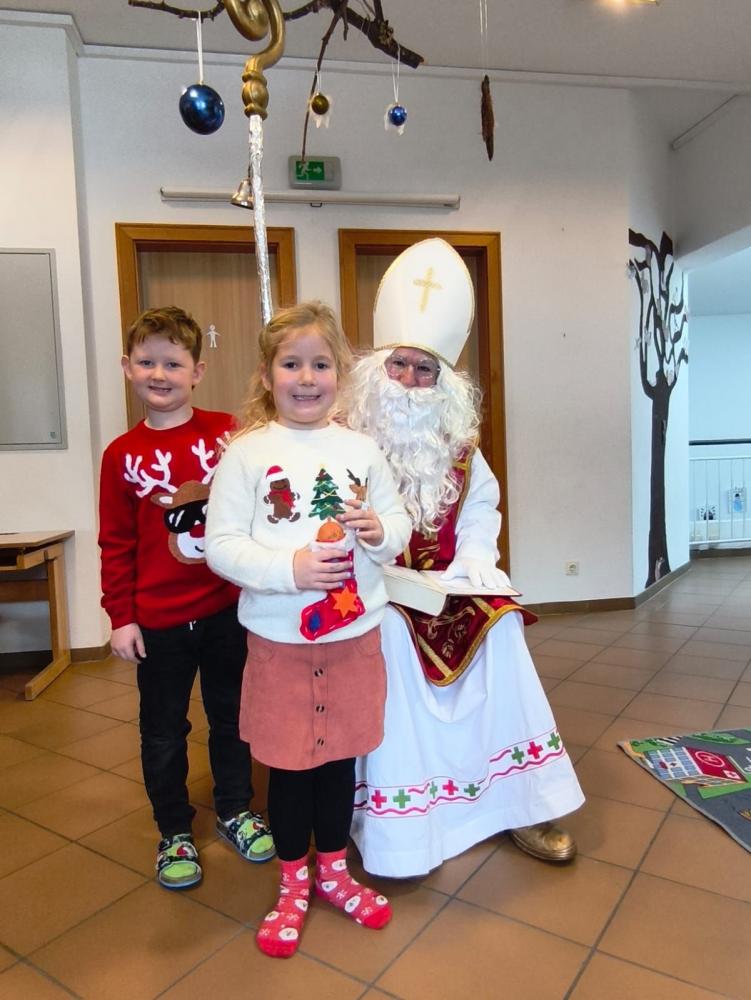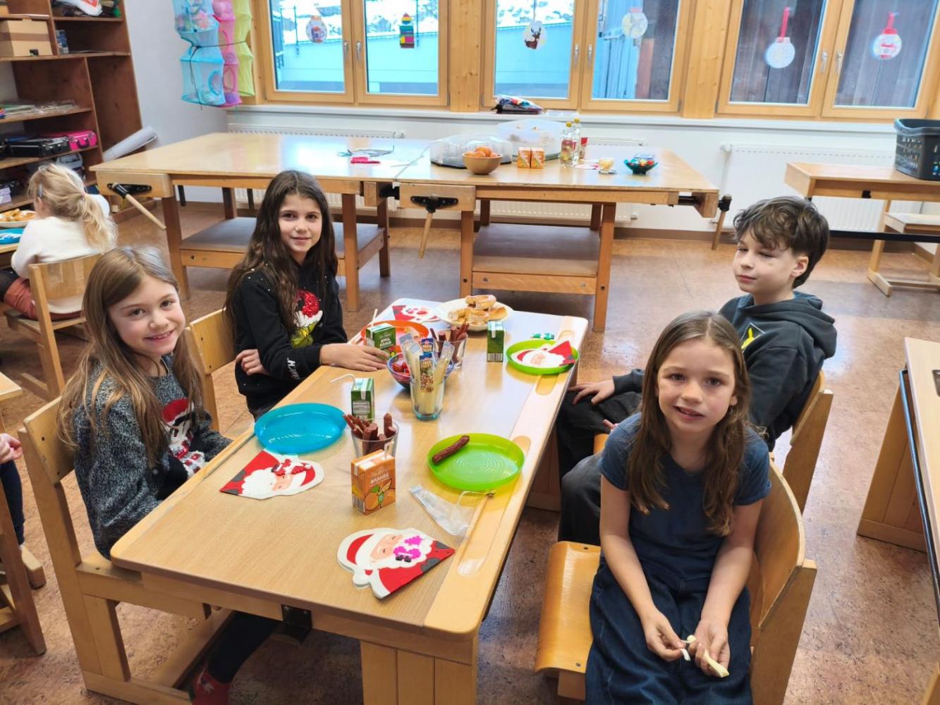 Am Freitag, den 05.12.2025, besuchte uns der Heilige Nikolaus in der Schule. Zusammen mit dem Kindergarten sangen wir für den Nikolaus Lieder und sagten ihm unsere gelernten Gedichte auf.