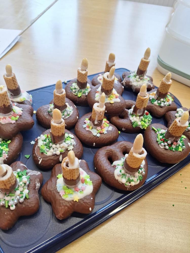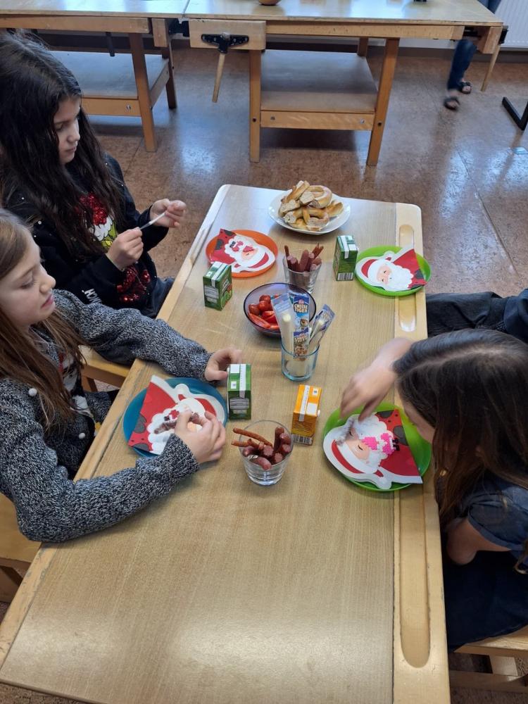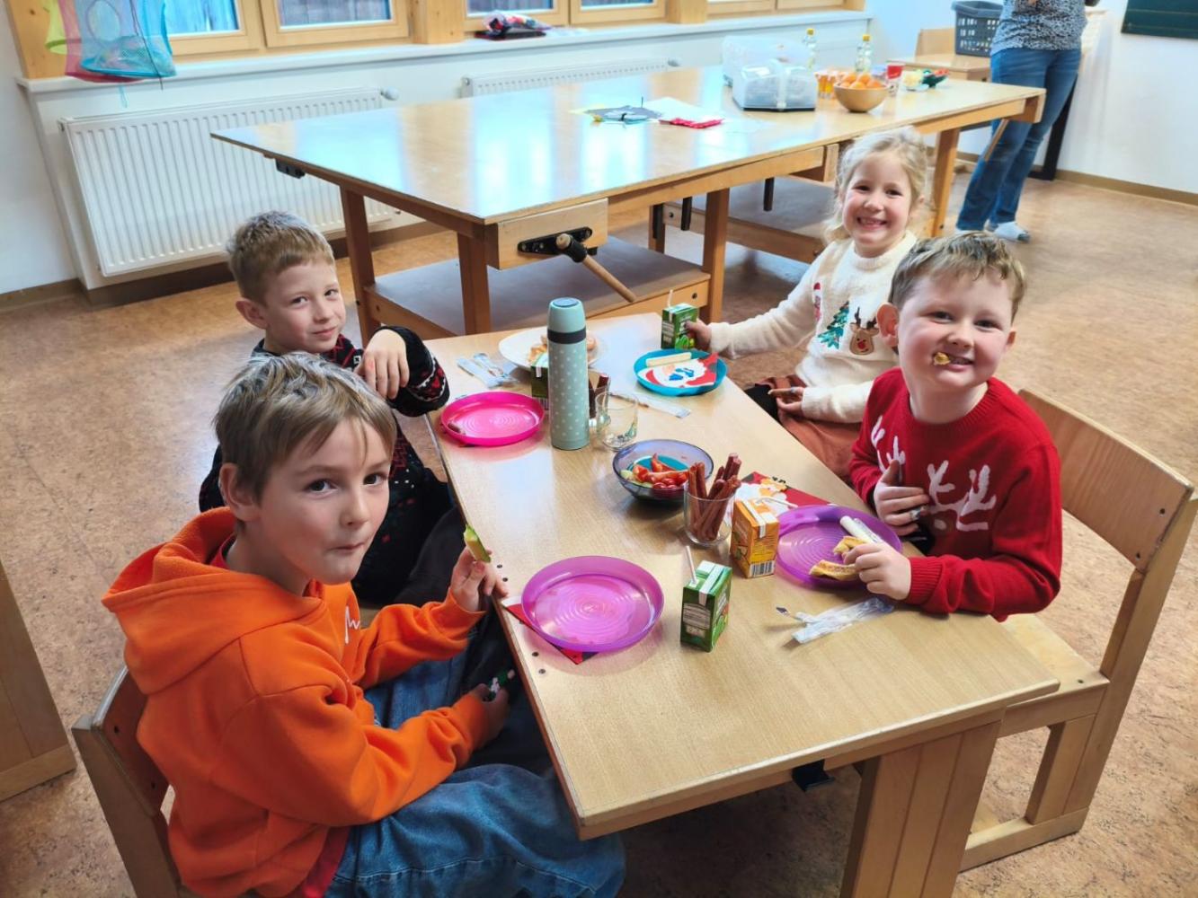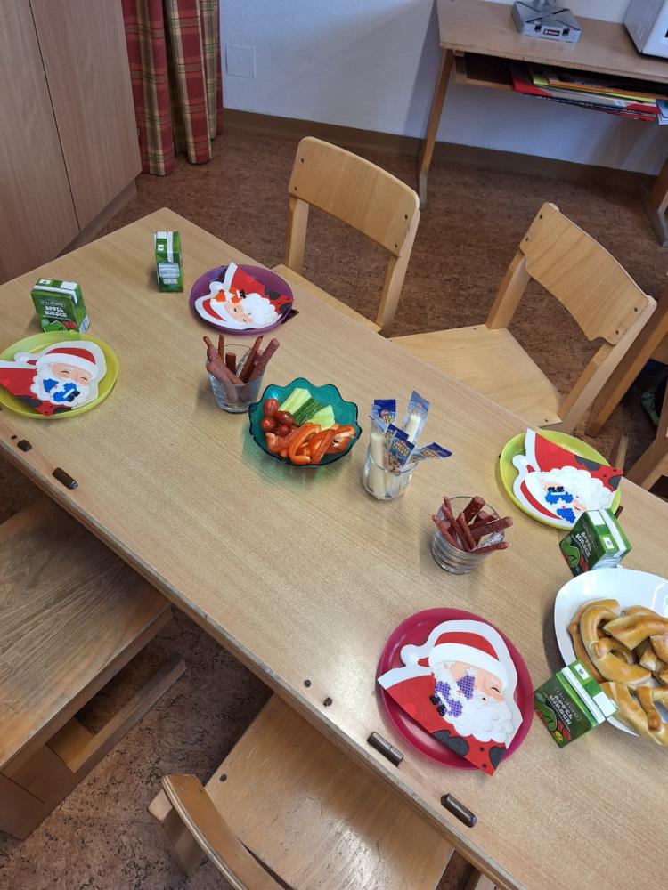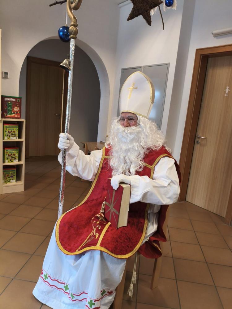 Am Freitag, den 05.12.2025, besuchte uns der Heilige Nikolaus in der Schule. Zusammen mit dem Kindergarten sangen wir für den Nikolaus Lieder und sagten ihm unsere gelernten Gedichte auf.