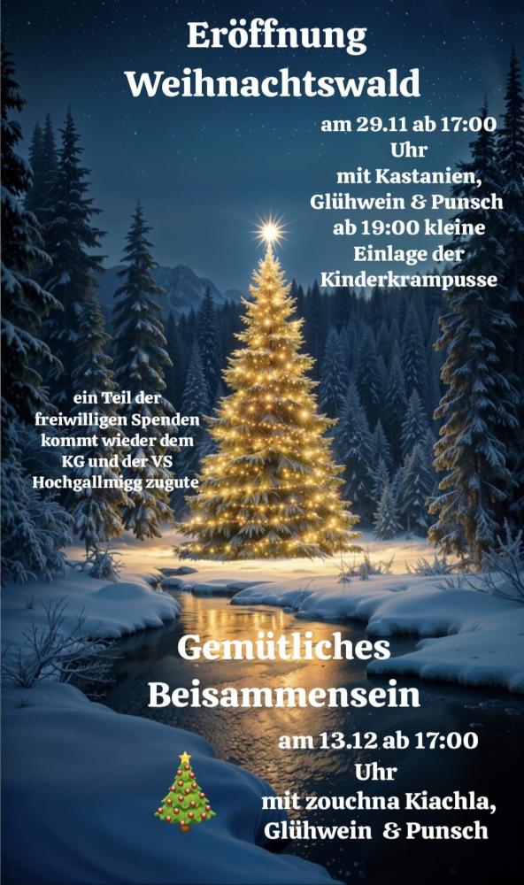 Auch heuer gestaltet eine engagierte Gruppe von Hochgallmigger Frauen & Männer einen Weihnachtswald. Wir wurden gebeten, wieder einen der Weihnachtsbäume zu schmücken - was wir natürlich gerne übernommen haben. Uns gefällt unser aufgeputzter Baum sehr gut!
