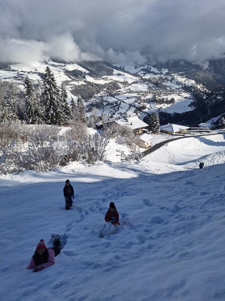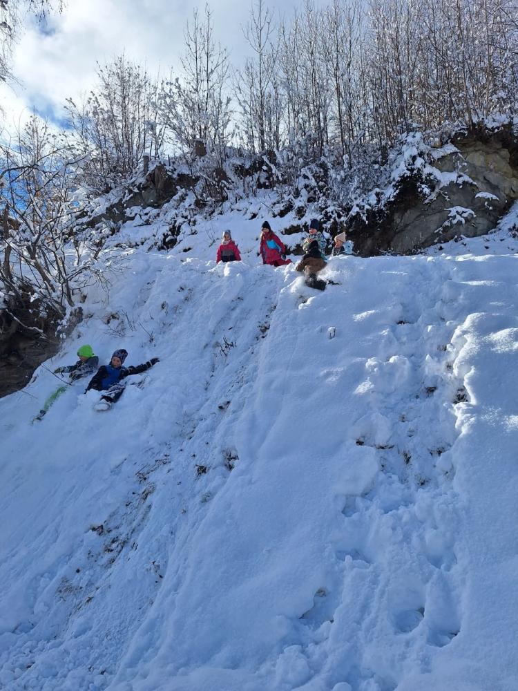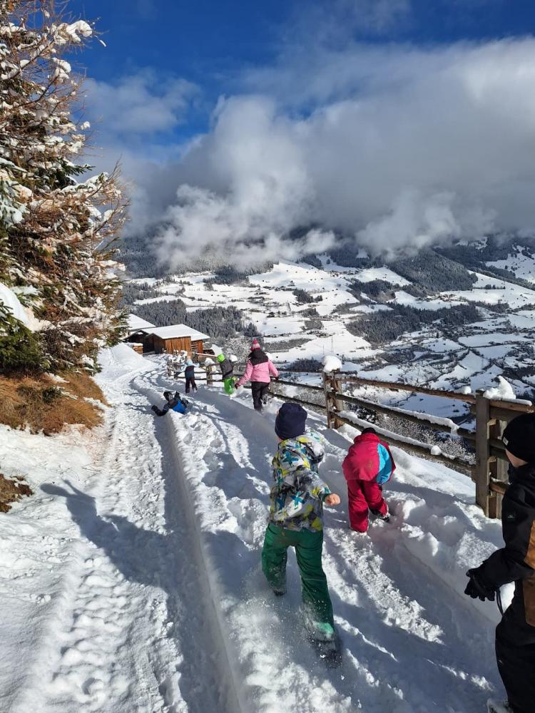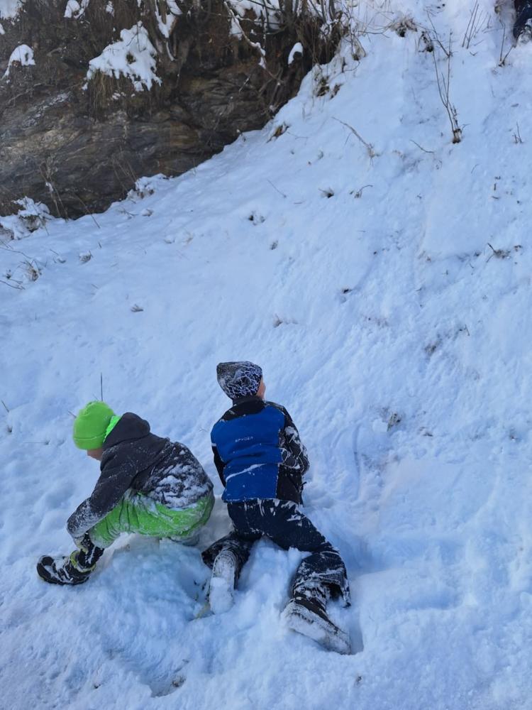 Den Spaziergang in den Weihnachtswald nutzten wir auch noch für eine kleine Rutschpartie im Schnee.