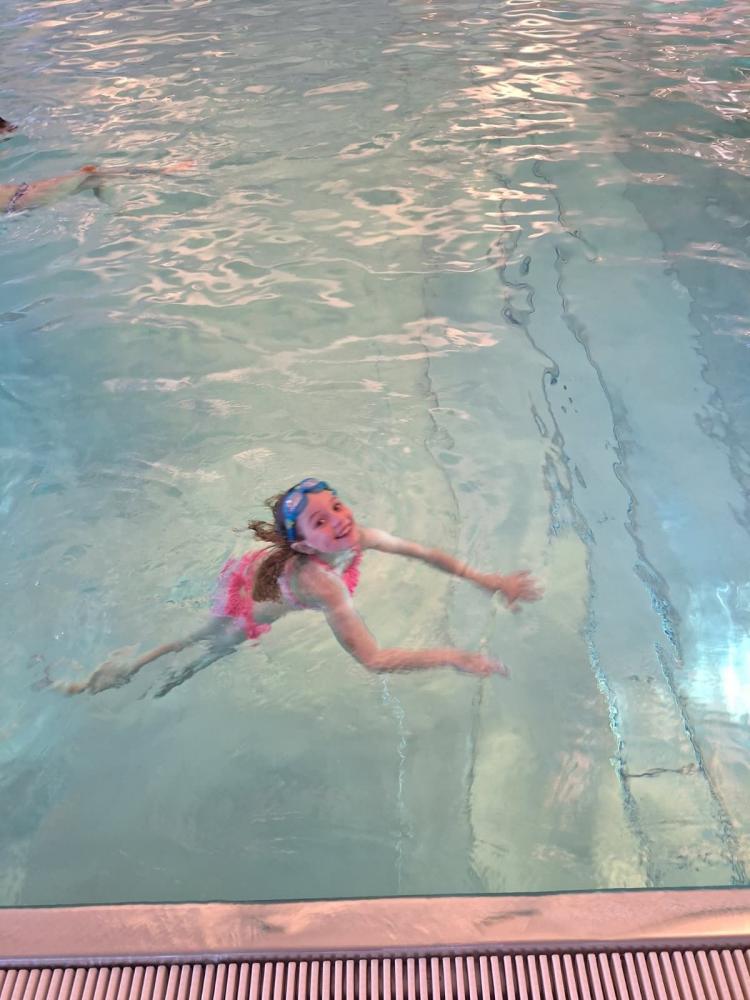 Nachdem wir mit den öffentlichen Verkehrsmittel angereist waren, wartete Elena Siegele vom ASKÖ vor Ort schon auf uns, um mit uns das Schwimmen zu trainieren.