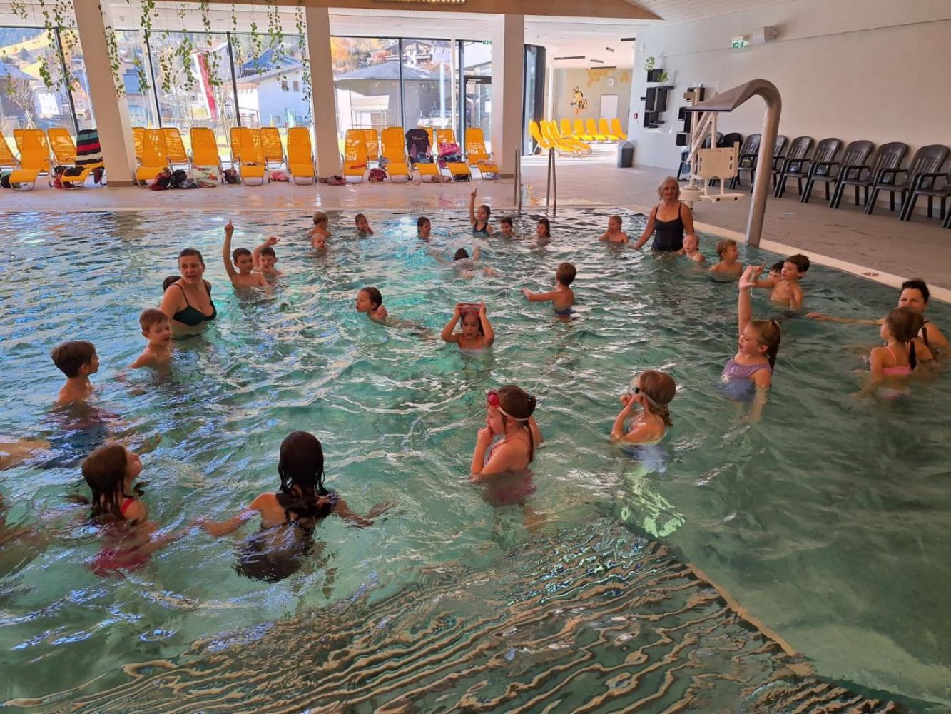 Zusammen mit der 1a Klasse der VS Fließ mit den Lehrerinnen Julia und Brigitte übten wir das spielerische Gewöhnen ans Wasser und natürlich auch die Schwimmtechniken.